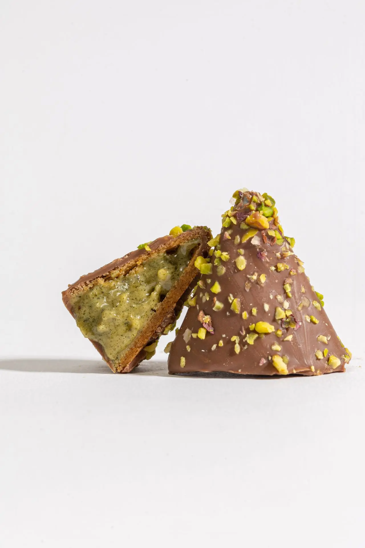 Ein zartes Herz mit Eisenkraut, umhüllt von dünnem Blätterteig und Milchschokolade, fein bestreut mit Pistazienstückchen.